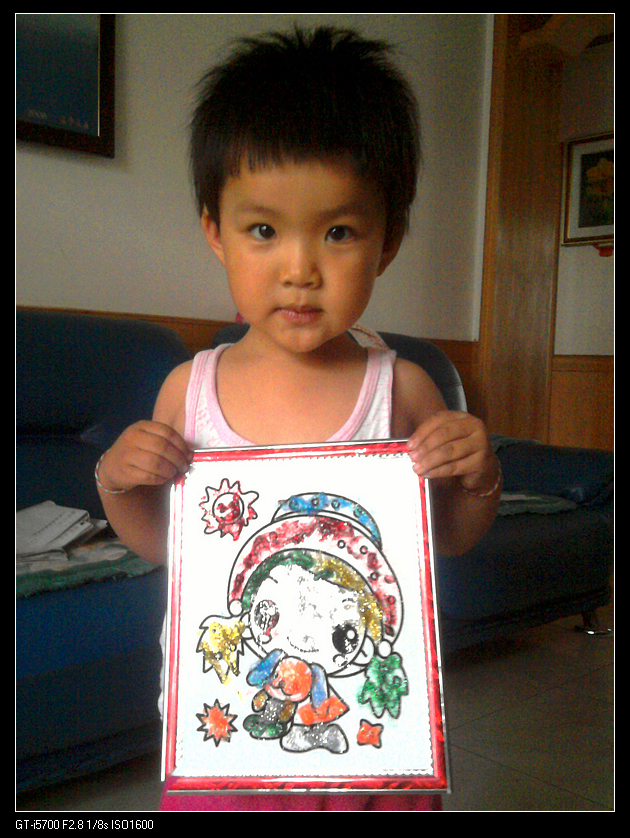 自从上次读书活动,在小亭子里看到一个小哥哥在画金粉画之后,宝宝就无时无刻不在催促我。答应了孩子的事情自然应当做到,更何况小家伙因为打算买这个,竟然连最喜欢的摇摇车都不坐了——要省钱买这个。原话是:“摇摇车要花钱,挤的那个画画的也要钱!”——真让妈欣慰。