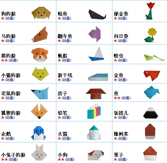 在这里给各位家长推荐一个不错的英文折纸网站,http://en.origami-club.com/,有5种语言可以切换,里面的折纸按难易程度分了类,可以根据孩子的喜欢自由选择。值得一提的是,每个折纸都有详细的图文教程和动画演示哦。