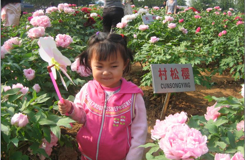十三帝王尽沧桑,唯留牡丹永芬芳。青山碧水相应出,繁华当世显容光。漫步在雍容华贵的牡丹园,欣赏着争芳斗艳的各色牡丹花,一种释然的情怀,一种陶醉的心情。。。。。。在心底细细的品味,穿梭于脑际,幽远而漫长,真想将所有尽收,花开与繁华真是美不胜收,过足了眼瘾,大饱了眼福。让我倍感快乐的是,在这个美丽的花园里我得到了爸爸给我买的小蜜蜂采牡丹风车,心满意足。高举着我的风车,犹如一只自由的小蜜蜂快乐的穿梭在美丽的牡丹园中,那个美啊,那个高兴啊,只有身在其中的我才能真正体会到。