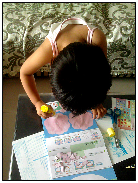 宝宝很喜欢做手工,一段时间让她玩《魔法早教系列》里面的自制贴贴书,可是那个远远不能满足孩子的兴趣。早就听说了多湖辉系列书,挑选了半天,买了一堆书,其中就有多湖辉的3岁和4岁的手工乐园。