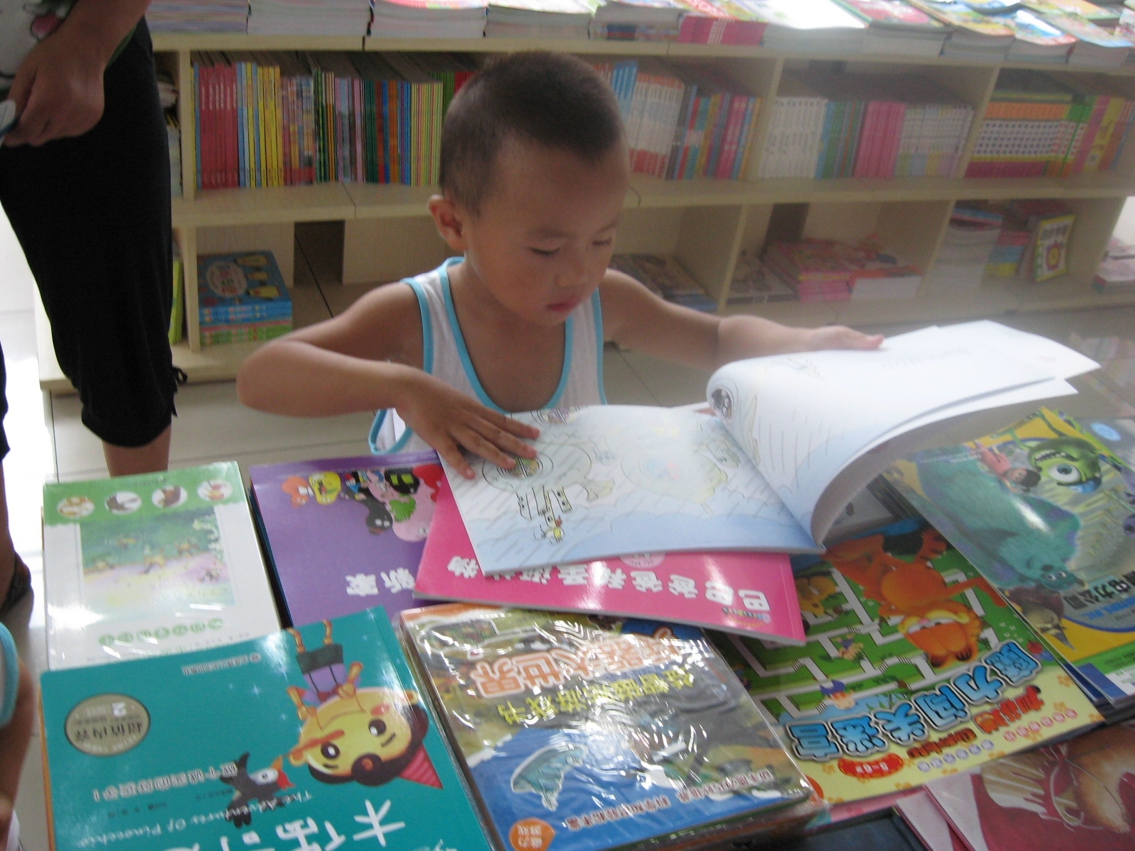 我们选择去了大观园附近的新华书店,到了书店直奔三楼的少儿图书区。琳琅满目的图书让孩子眼花缭乱,兴奋得直嚷嚷,我告诉他这里是看书 购书的地方要保持安静,他“嗯”了一声点点头。他转过身一眼就看到了少儿绘本专台立马跑了过去,我马上跟上,哈说实话我也是第一次在实体店里看到这么多熟悉的绘本,一本一本的绘本儿子很多都读过感觉好亲切。他东转转,西转转,看到感兴趣的书,就拿出来翻看。真不知要哪一本,我给儿子说“你可以选择你自己喜欢的一本不过只能是一本哦”,儿子在众多绘本中选了《巴巴爸爸去度假》,第一次去逛实体书店感觉很好。以后多创造机会带孩子去逛逛各地的实体书店图书馆,让孩子沐浴在书的海洋中,在书海的世界里快乐遨游!