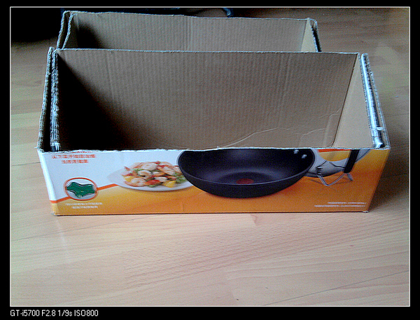 家里的书在书柜里放着,宝宝自己不好取,我妈给弄了个储物箱,也很不方便,家里书都乱堆着,宝宝想看那本自己取。早就想做一个纸箱子书架,一直懒得动手,那天正好老爸买了口锅回来,我看着箱子大小正合适,本来想着是竖着分两个的,老爸的建议好,横着划开,正好两个。