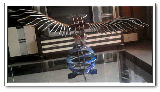 很是埋怨了老公半天,于是把其他的收起来,等宝宝再大一些,能更多动手的时候再拿出来。老公嫌我叨叨,又不信宝宝做不了,于是回来的时候,也打开了一个,打算让宝宝自己动手,结果也是基本靠她自己完成了,宝宝的作用是在旁边不停地喊“加油!”雄鹰展翅——呃,讨厌的老公,我还得找地方摆这些纸工作品。