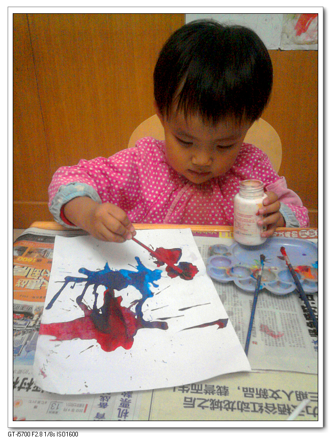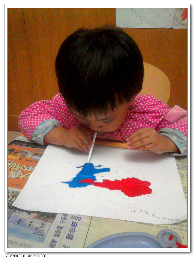 虽然没什么成品出来,不过宝宝还是玩得很畅意,都舍不得收工下课,一直问我什么时候再玩吹画。下次再换两种颜色给她吧。