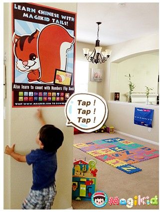《魔力小孩尾巴》使用中英文两种语言讲述了温馨的故事,同时提供了填色和拼图游戏来强化孩子们对动物的认知。AppAble的评论不仅吸引了美国妈妈的关注,位于美国圣地亚哥的幼儿园也开始使用《魔力小孩尾巴》来让孩子们学习中文。在这张海报上同时还包括了来自“魔力小孩”系列另一款产品《翻翻翻学数字》的教学内容。