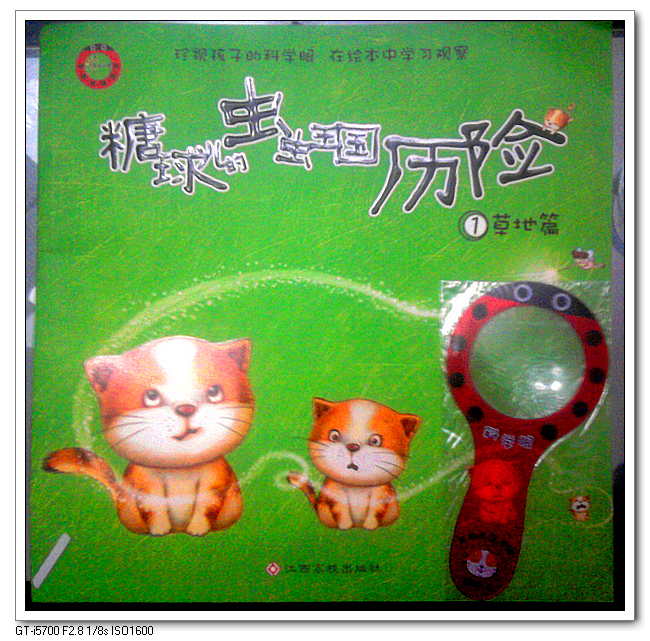 绿色的封面,令人赏心悦目,可爱的小猫,表情从有些不知所措,一直到发现情况不对,哇哇大叫,表情生动有趣。让我一直心痒许久的,则是这个“科学眼”,塑料制的,终于可以不必每天提心吊胆的看着宝宝玩老爸的玻璃放大镜了。