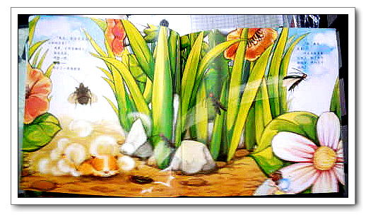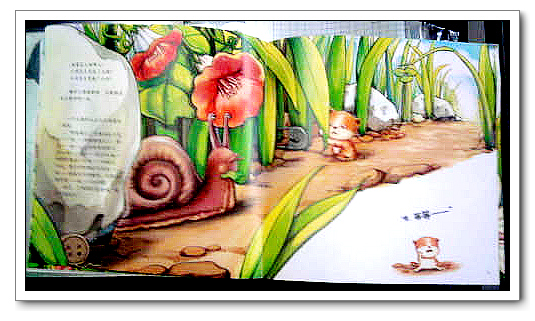 好大的蜗牛啊,看看糖球儿害怕委屈的表情,赶紧抱住一根草,就像抱住了一棵大树。