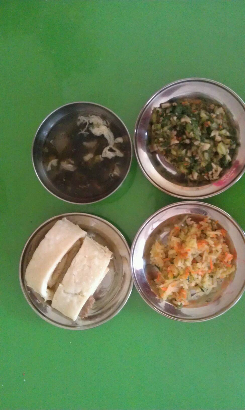 周一晚:肉花卷,香菇油菜,肉炒土豆丝,海带蛋花汤