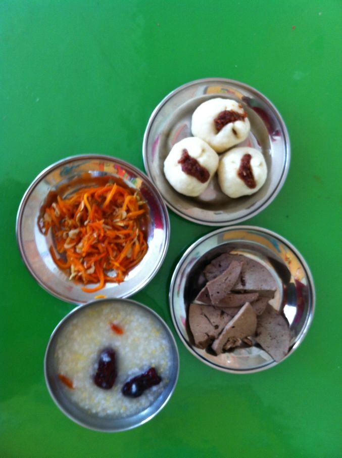 周二早:大枣糯米粥,开口笑,酱猪肝,胡萝卜海米小咸菜
