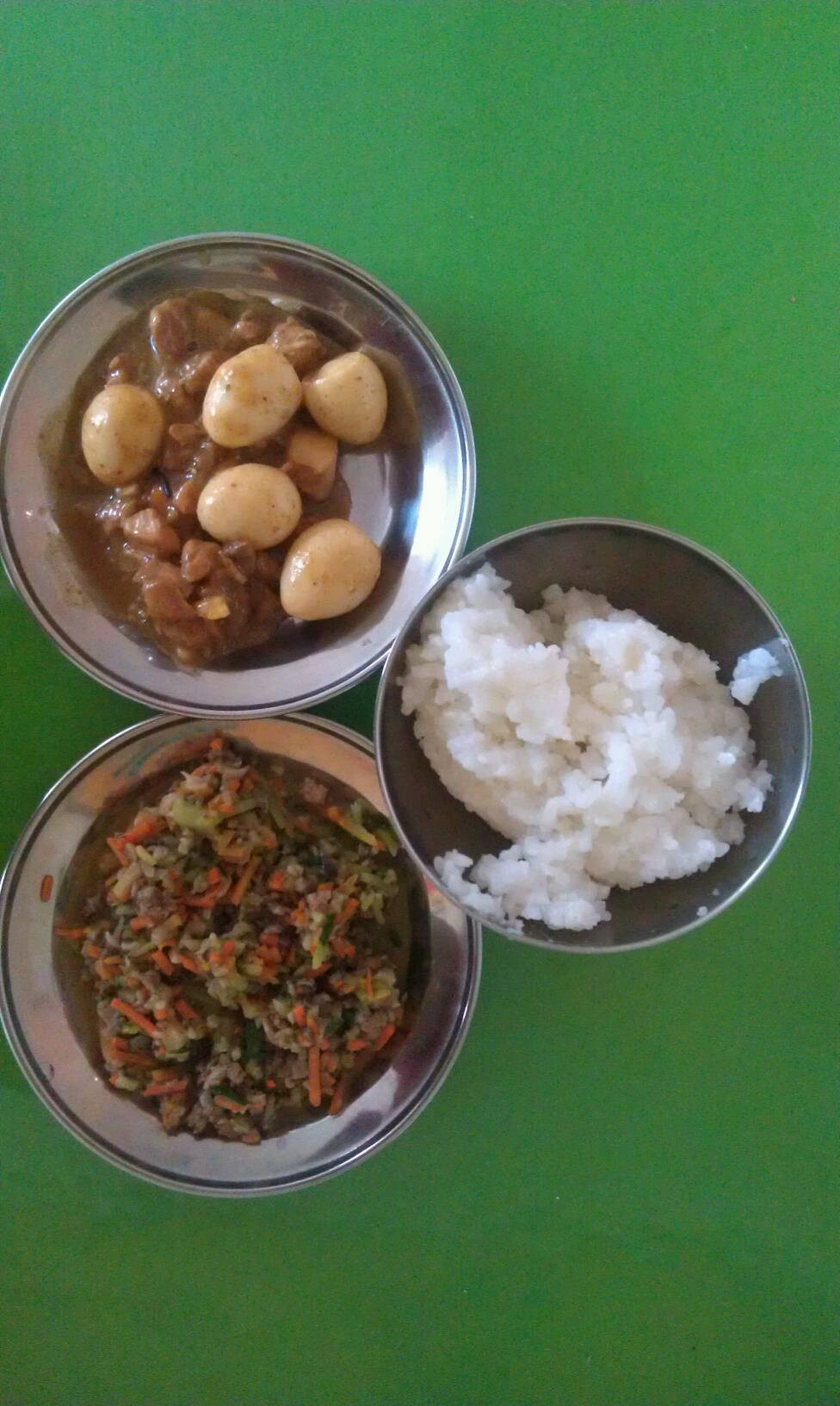周三午:粥饭,牛肉炖萝卜,包菜香干