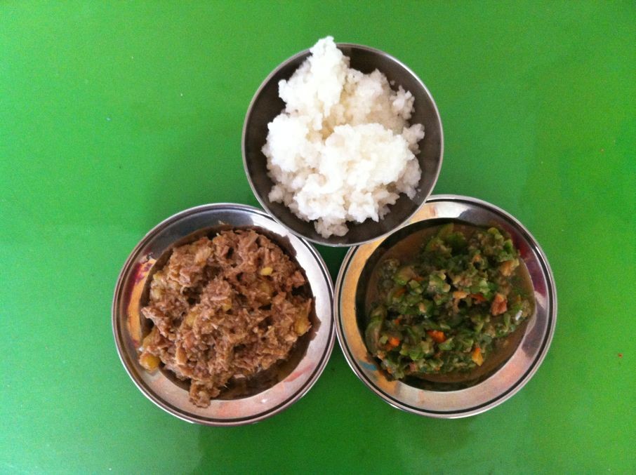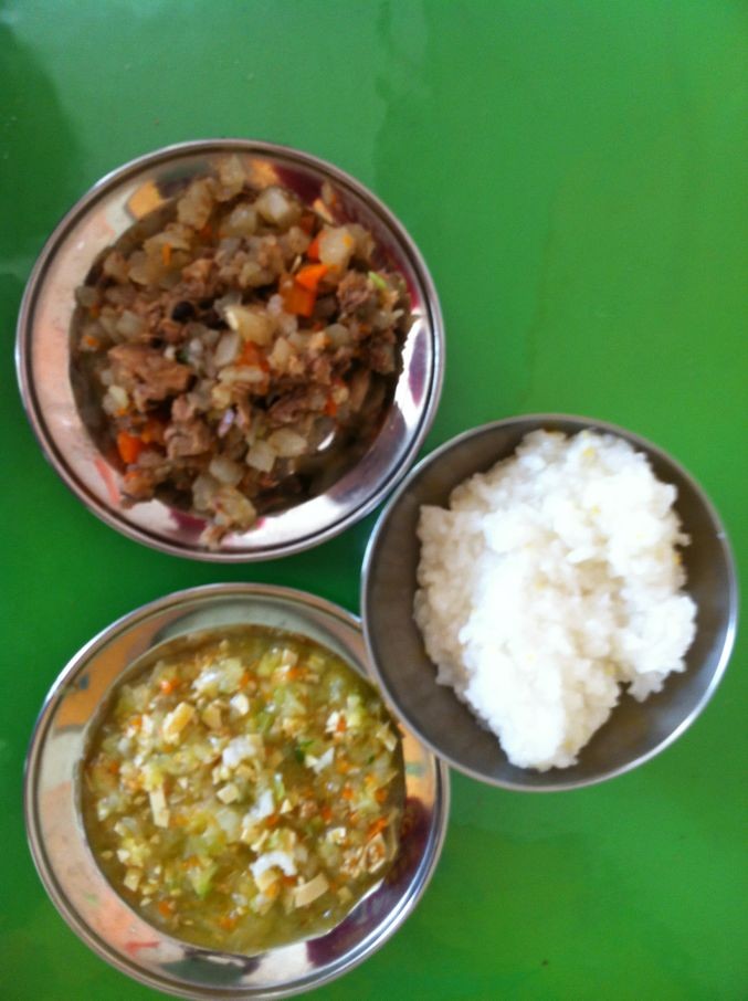 周一午:粥饭,香酥鸡块,虾皮角瓜
