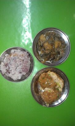周三晚:粥饭,红烧狮子头,茄子炖土豆