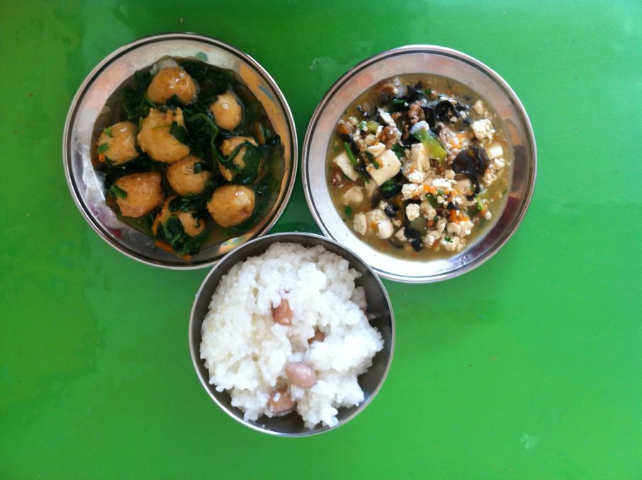 周五中:粥饭,蔬菜肉丸,蟹黄豆腐